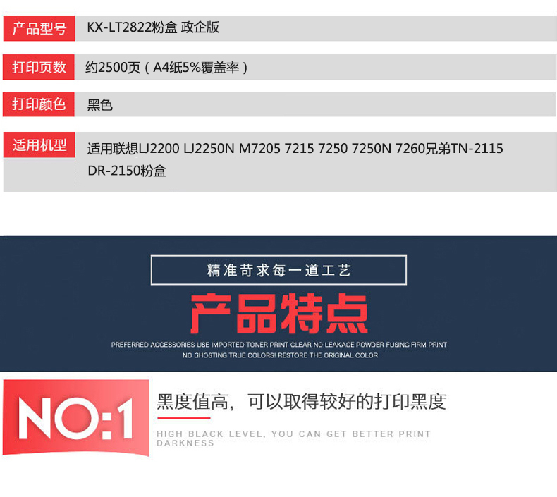凱欣政企版 KX-LT2822 粉盒 適用聯(lián)想LJ2200 LJ2250N M7205 7215 7250 7250N 7260兄弟TN-2115 DR-2150粉盒 全國(guó)統(tǒng)一價(jià):136元