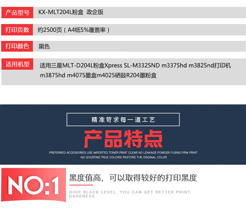 凱欣政企版 KX-MLT204L 適用三星MLT-D204L粉盒Xpress SL-M3325ND m3375hd m3825nd打印機(jī) 全國(guó)統(tǒng)一價(jià):186元