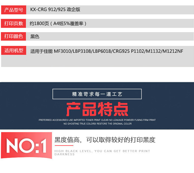 凱欣政企版 KX-CRG 912/925 硒鼓 適用于佳能 MF3010LBP3108L惠普P1102M1132全國(guó)統(tǒng)一價(jià):126元