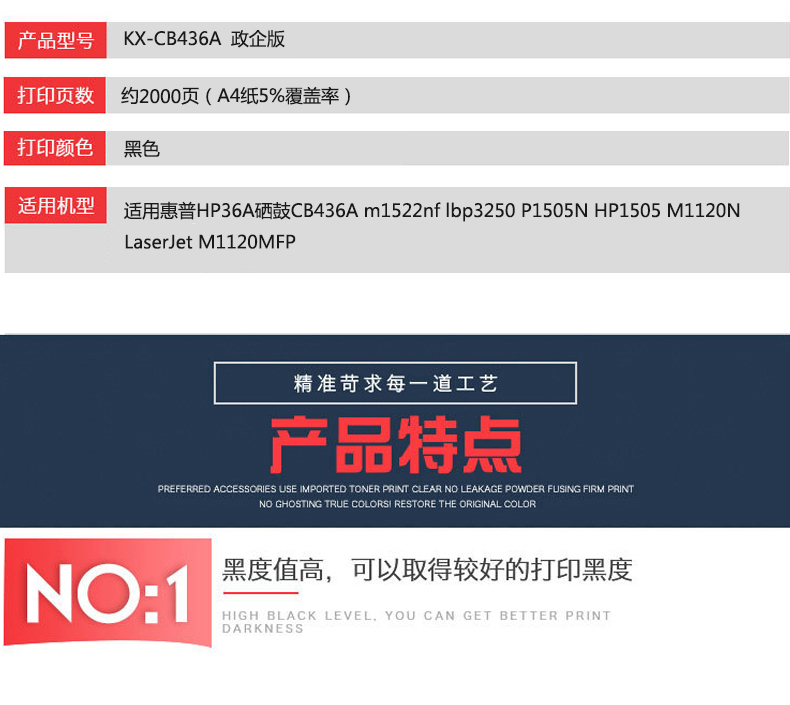 凱欣政企版 KX-CB436A 硒鼓 適用惠普HP36A CB436A m1522nf墨盒佳能lbp3250 P1505N HP1505打印機(jī) 全國統(tǒng)一價(jià):130元