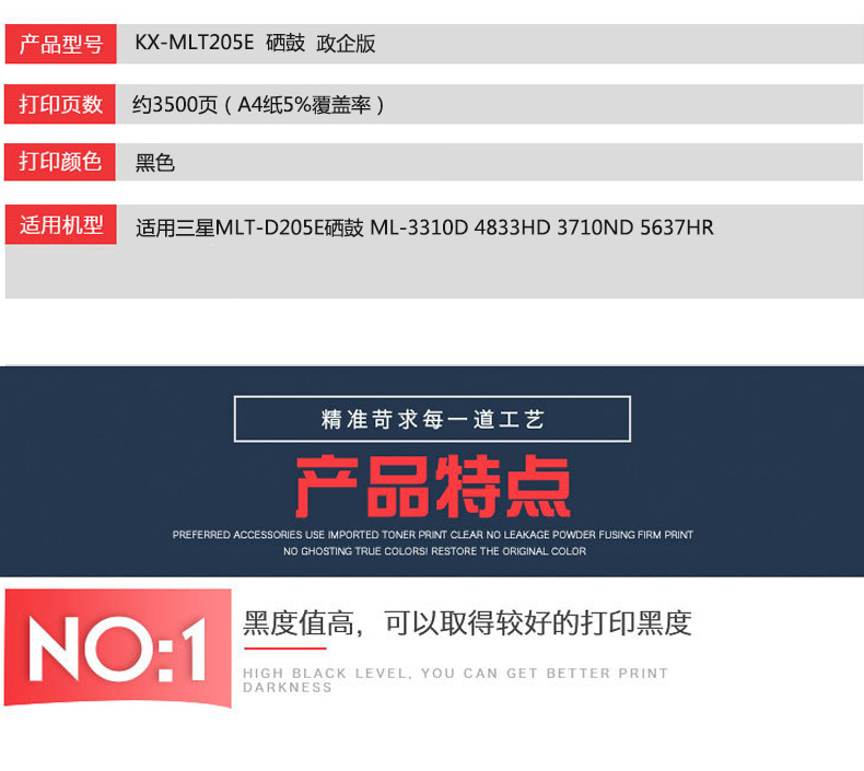 凱欣KX-MLT205E 適用三星 MLT-D205E 硒鼓 ML-3310D 4833HD 3710ND 5637HR 全國(guó)統(tǒng)一價(jià):226元