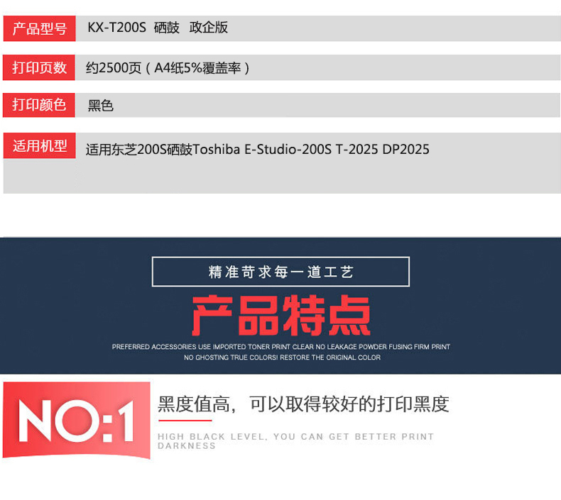 凱欣KX-T200S 適用東芝200S硒鼓Toshiba E-Studio-200S T-2025 DP2025 全國(guó)統(tǒng)一價(jià):195元