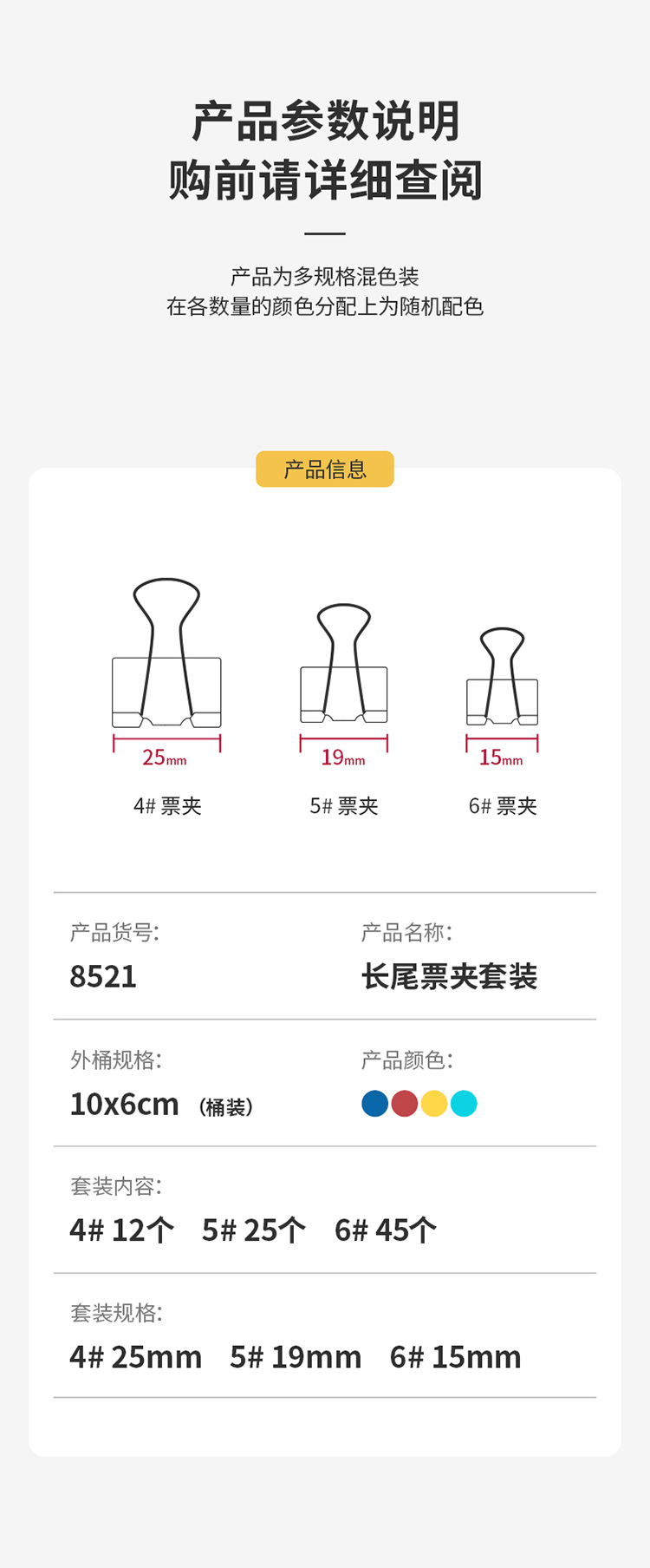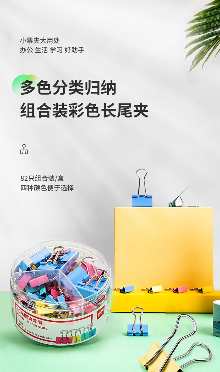 得力8521組合裝彩色長(zhǎng)尾夾 全國(guó)統(tǒng)一價(jià):16元