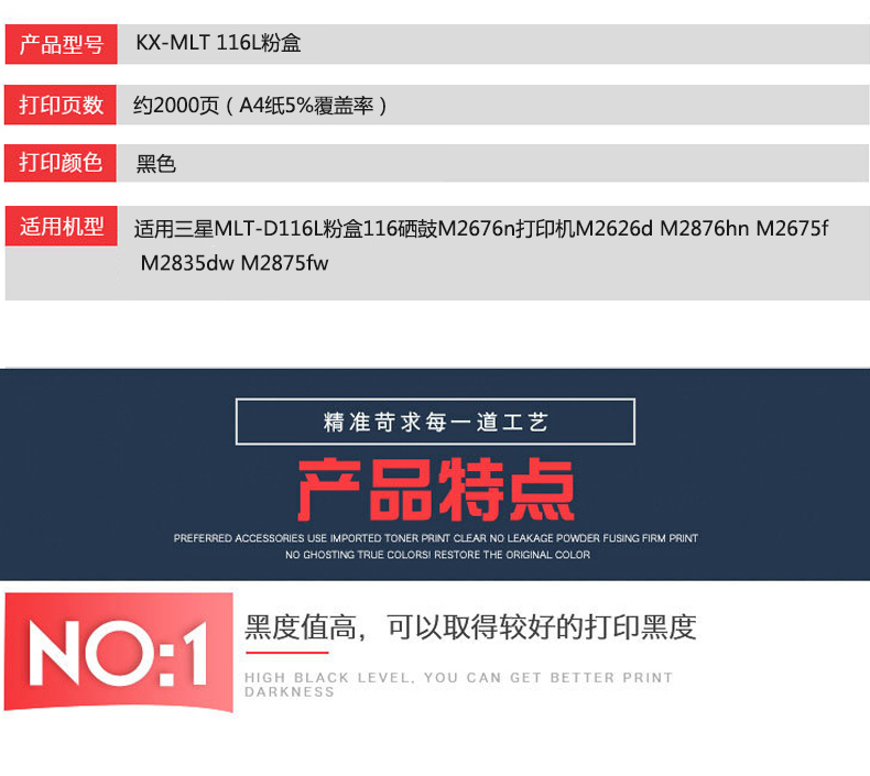 凱欣標(biāo)準(zhǔn)版 KX-MLT116L粉盒 適用三星MLT-D116L粉盒116硒鼓M2676n打印機(jī)M2626d M2876hn M2675f 全國統(tǒng)一價:156元